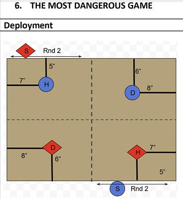 At the start of each battle round, starting with the player who has initiative, each player picks 1 enemy fighter to be a HUNTED fighter. Players score 1 point whenever a HUNTED fighter is taken down. If that HUNTED fighter was an enemy leader, they score 2 points instead. If that HUNTED fighter had the highest or tied for highest wounds characteristic of all fighters on the battlefield, they score 3 points instead. At the end of each battle round, allocate d6 damage points to all Hunted fighters within 4" of a battlefield edge. The battle ends after 4 rounds. The player with the most victory points wins the battle.