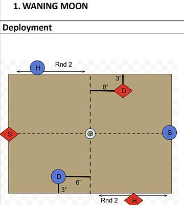 Secondary Moon: At the end of each battle round, the player with the most fighters standing in the light of the moon scores 1 victory point. The battle ends after 4 rounds. The player with the most victory points wins the battle.
