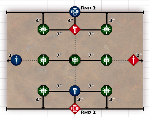 Before the battle, 7 treasures are placed on the battlefield floor as shown on the deployment map.