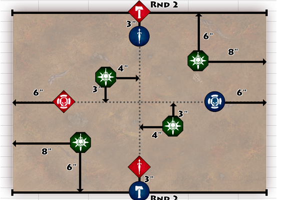Control - At the end of each round, players score 1 point for each objective they control. The player controlling the objective picks one fighter within 3” of that objective. That fighter is now carrying a treasure. If the chosen fighter can't carry the treasure, they immediately drop it. Then that objective is removed from the battlefield.