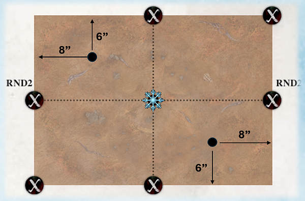 At the start of each battle round, each player places 1 treasure on the battlefield, starting with the player who wins initiative that round. The treasures are scattered 2D6” in a random direction, from the ‘present drop’ in the centre of the battlefield.