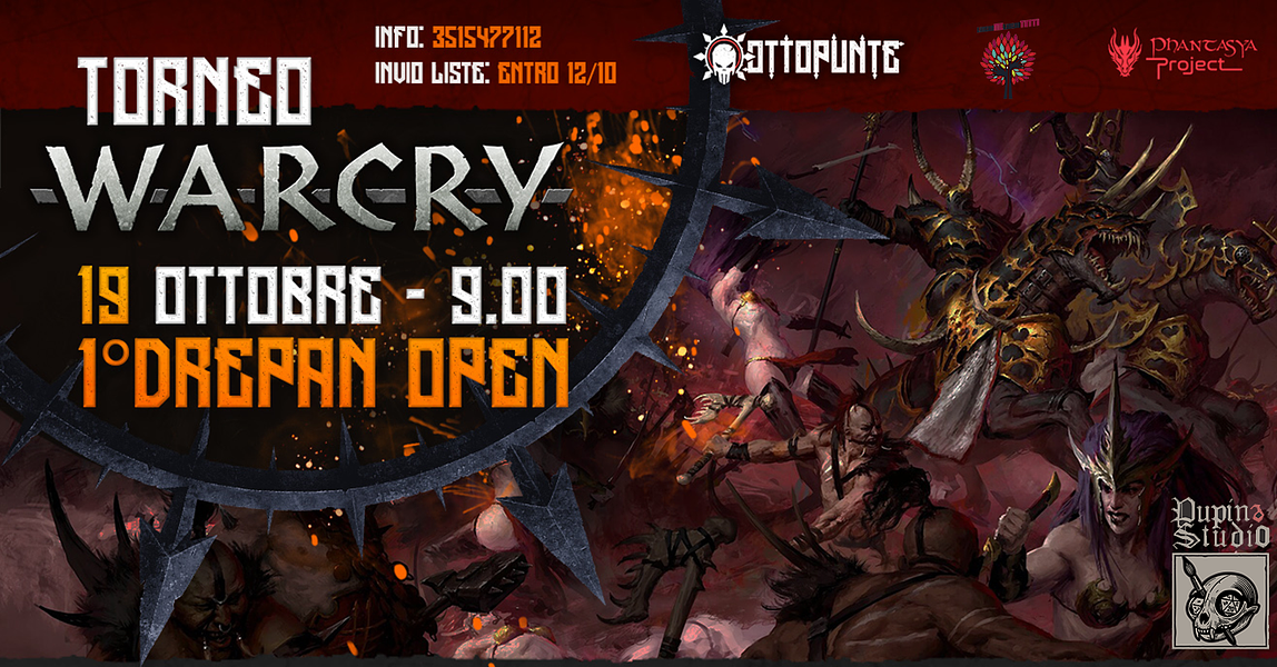 Tournament Name: 1° DrepanOpen - WarcrySicily Managed by:Mesanto When:19 Oct 2025 Rounds:4 Players:9 / 20 Status: Unstarted Location: Il Covo del Nerd - Trapani Via Palermo, 87, 91100 Trapani TP Italy
